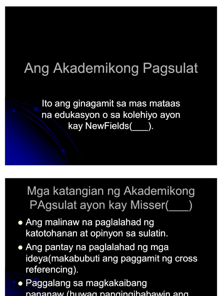 13 rows Akademikong Sulatin Ang akademikong sulatin ay isang uri ng. Anotasyon ng Bibliograpi 12. 13 rows Akademikong Sulatin Ang Akademikong sulatin ay isang intelektwal na pagsulat.