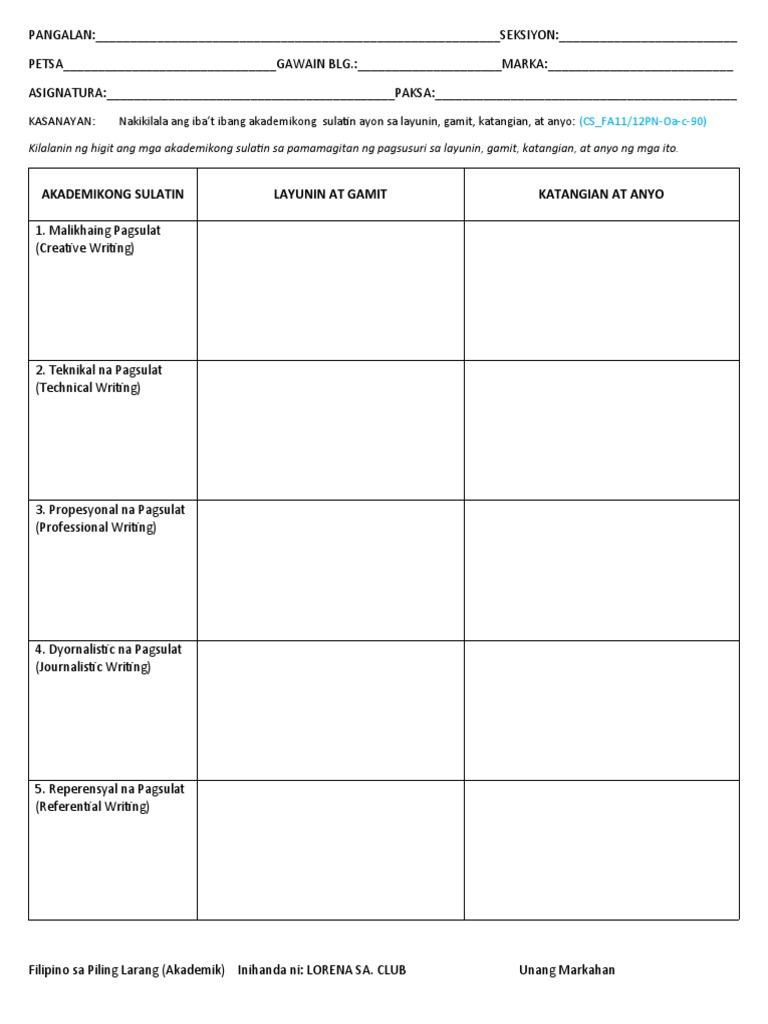 Pagsulat ng akademik teknikal journalistic referential propesyonal at malikhain. Isip kong kakaiba ang pangungusap na Hapon pero dahil sinulat ng Hapon akala koy tama. Ang gawaing ito ay.
