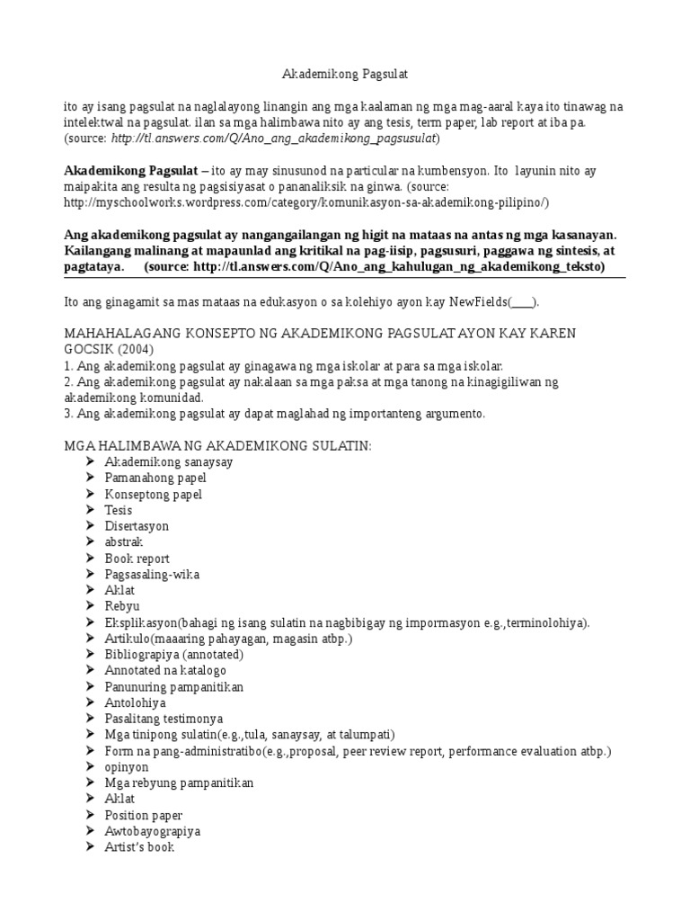 Kaya naman maari ring maging batayan ang unang akademikong sulatin para naman sa iba pang mga aral na magagamit para rin sa ikinabubuti ng. Pagpupulong SaanIris Kanan Park. - Mabibigyang-kahulugan din ang akademikong pagsulat bilang anomang akdang tuluyan o prosa na nasa uring ekspositori o argumentatibo at ginagawa ng mga mag-aaral guro o mananaliksik upang magpahayag ng mga impormasyon tungkol sa isang paksa.