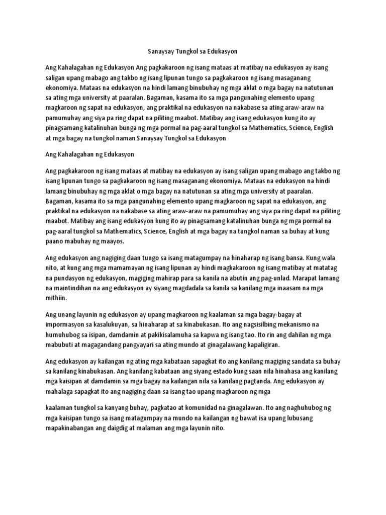 Sanaysay Tungkol Sa Edukasyon Pdf